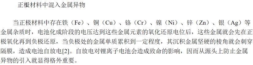 正极材料杂质的危害