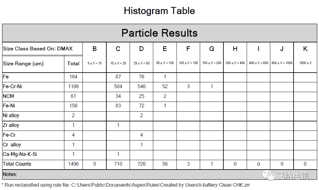 杂质的分析结果严格按照 VDA19 要求的格式呈现,颗粒分类统计结果更有助于评估锂电池生产的清洁度情况,方便不同批次样品的对比,以及生产工艺调整的验证。