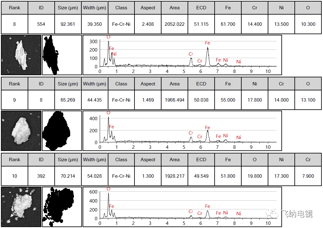 每个杂质颗粒的形貌,尺寸,成分,以及分类都能看!