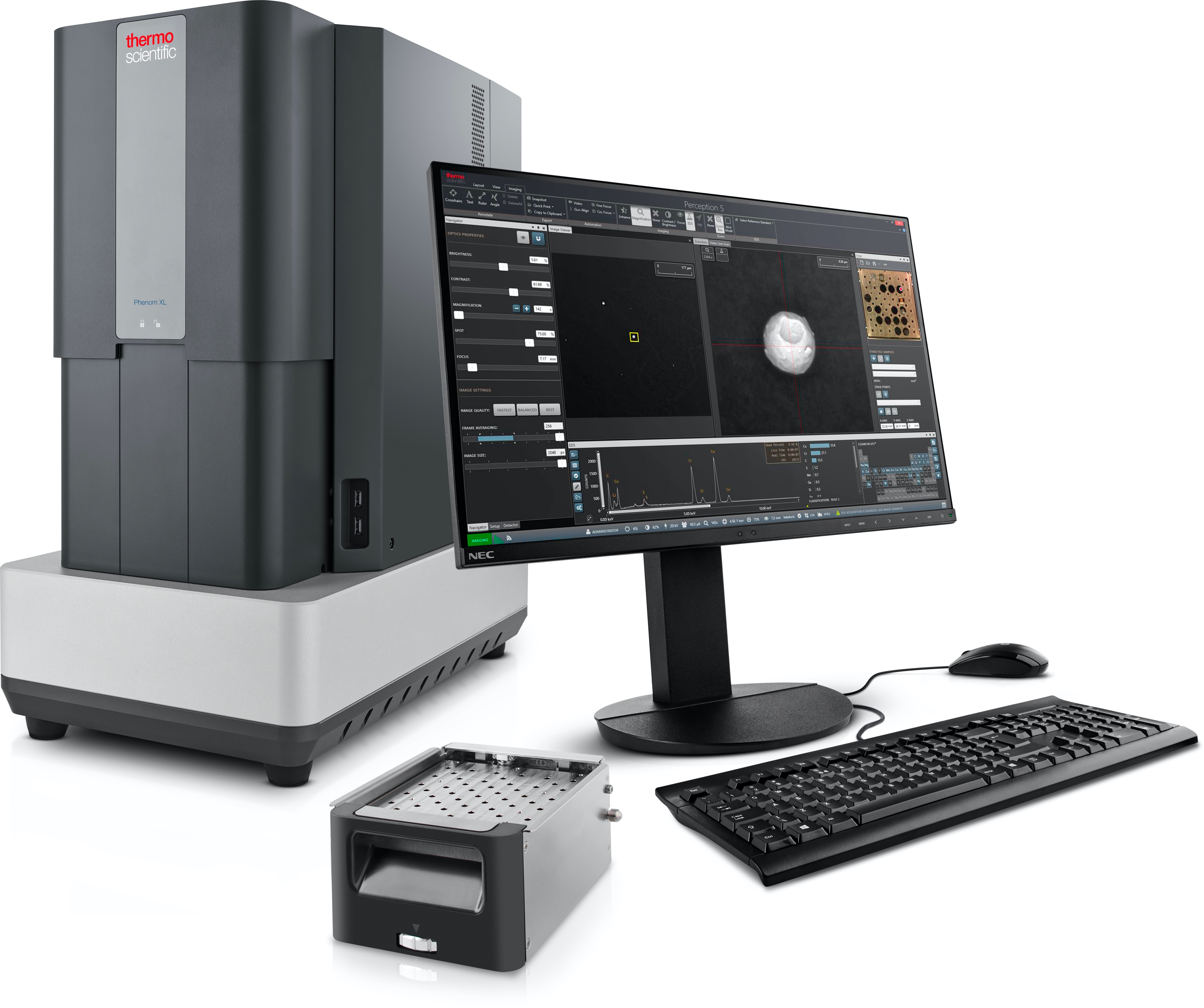 检测原理:以扫描电镜 + 能谱仪为硬件基础,通过背散射成像的明暗衬度识别颗粒,进而对颗粒进行能谱成分分析,根据颗粒形貌和成分信息对其智能分类,并且可以一键生成检测结果的报告。