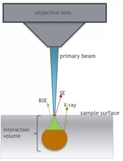 电子束与样品相互作用将会激发出多种电子信号,包括背散射电子(BSE)、二次电子(SE)等。二次电子(SE)主要表征样品的表面形貌信息,激发深度一般低于 10nm,主要表征样品的表面形貌信息。
