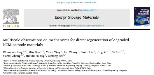 获奖论文:Multiscale observations on mechanisms for direct regeneration of degraded NCM cathode materials (对退化NCM 正极材料直接再生机制的多尺度观察)