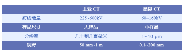下面是工业 CT 和显微 CT 的简要对比表: