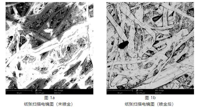 如图 1a 所示,在镀膜以前,样品异常发亮,通过改变亮度对比度也无法获得好的成像效果,当镀膜以后(图1b),获得了更高质量的图像。