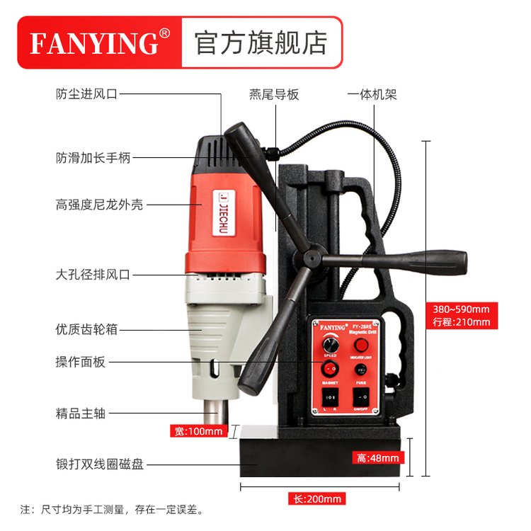 泛英磁力钻机工业级电磁铁吸钻孔机攻丝空心调速小型台钻磁座钻
