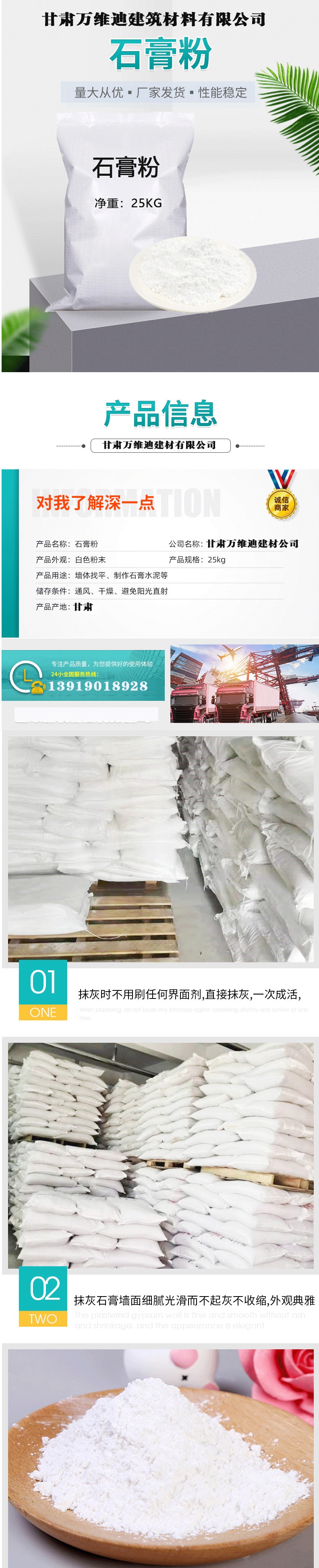 万维迪 轻质抹灰粉刷石膏 墙面满批底层找平材料 内墙防裂防霉无砂
