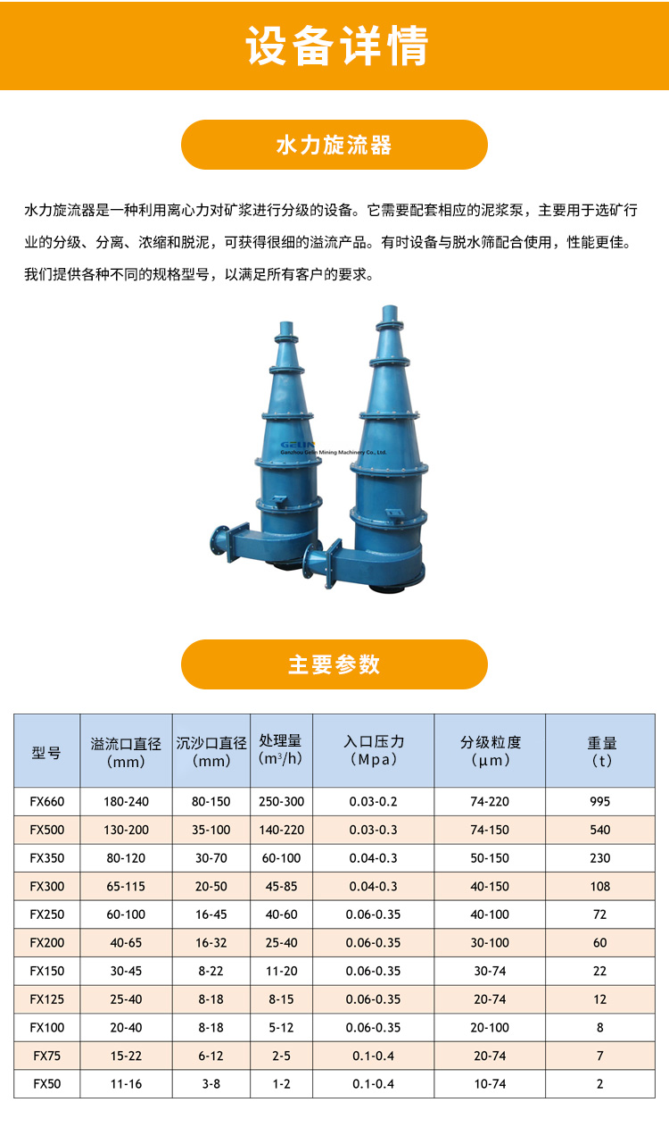 污水处理水力旋流器泥沙分离选矿除渣分级效率高