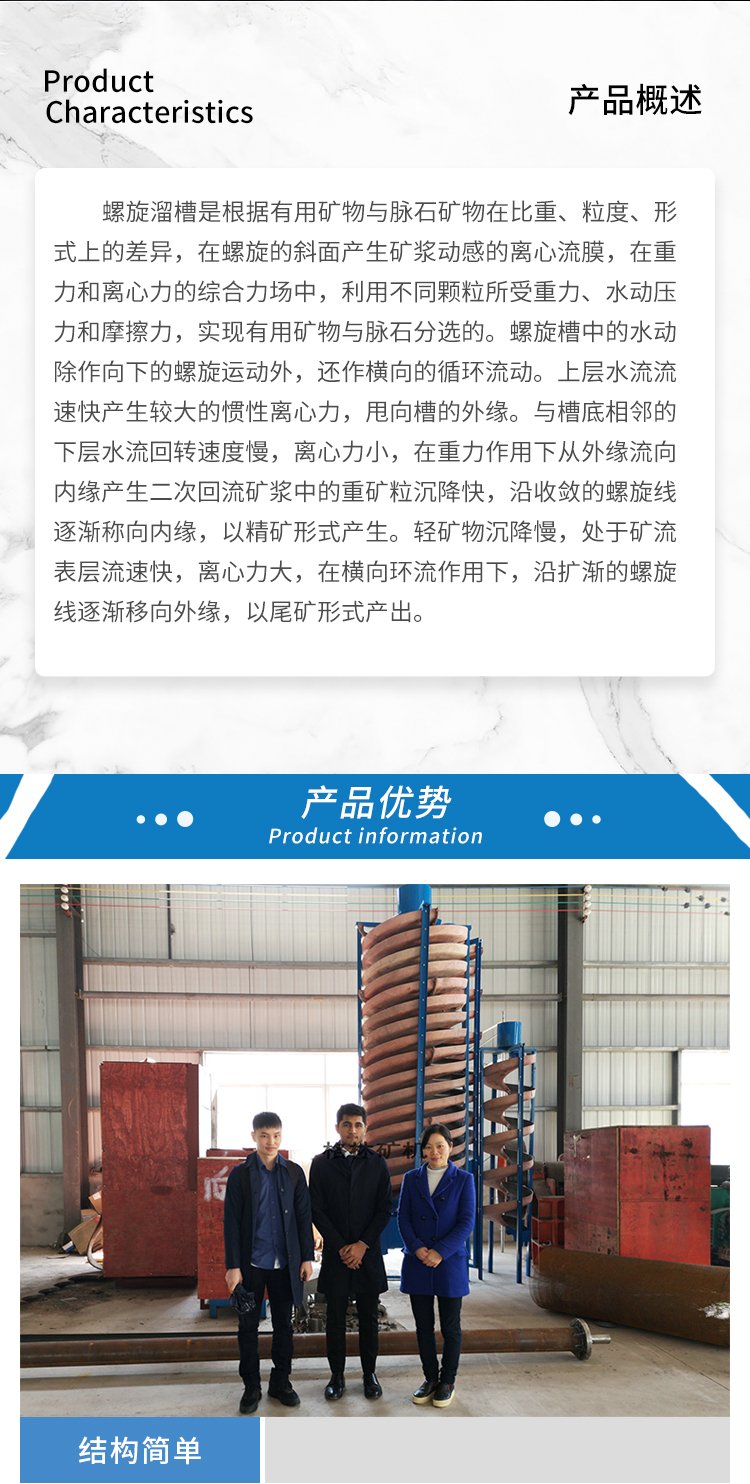 锆英砂铬铁矿铁矿砂无需动力选矿设备fiberglass螺旋溜槽