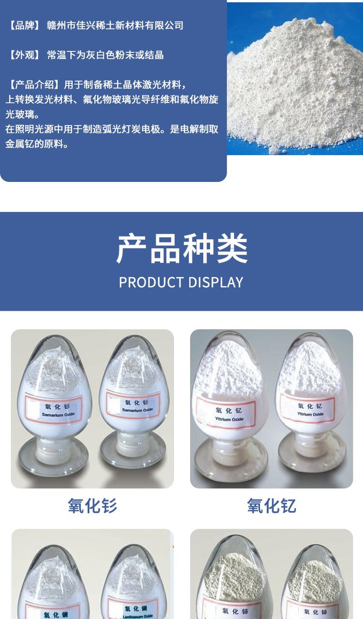 稀土氧化物、稀土金属、氧化钇、氧化钐、氧化镧、氧化钕、氧化铥、氧化镱、氧化钪、氧化镥、氧化钬、氧化铕、氧化镨、氧化钆、氧化镝、氧化铒、氧化铈、氧化铽、微米纳米氧化物