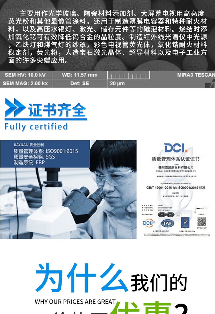 氧化铕、氧化镝、氯化钇、醋酸铈、氯化镧、氟化镱、氯化钕、氧化铈、氧化铽、氧化铥、醋酸镨、氧化镨、氧化镧、醋酸镧、氟化铈、氧化钕、氧化钇、氧化镥、醋酸钇、氟化钆、氟化钇