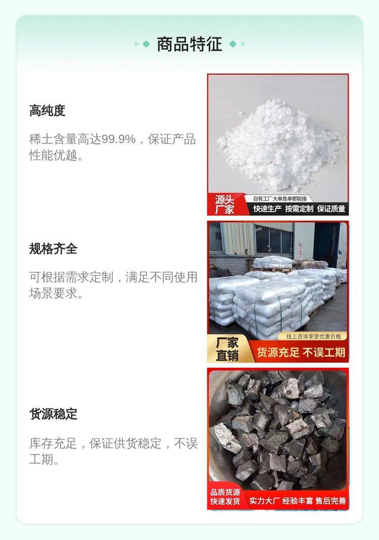 抛光粉、氧化铈、金属镧、纳米蓝、金属镨、氧化锆、金属铈、氧化锂、金属镝、钆铁合金、金属钕粉、镨钕合金、纳米钨酸、三氧化钨、高纯钨粉、镝铁合金、金属钆粉、金属钐粉、金属钇粉、黑色氧化铌、稀土新材料、荧光粉发光、氧化钕粉末、混合稀土金属