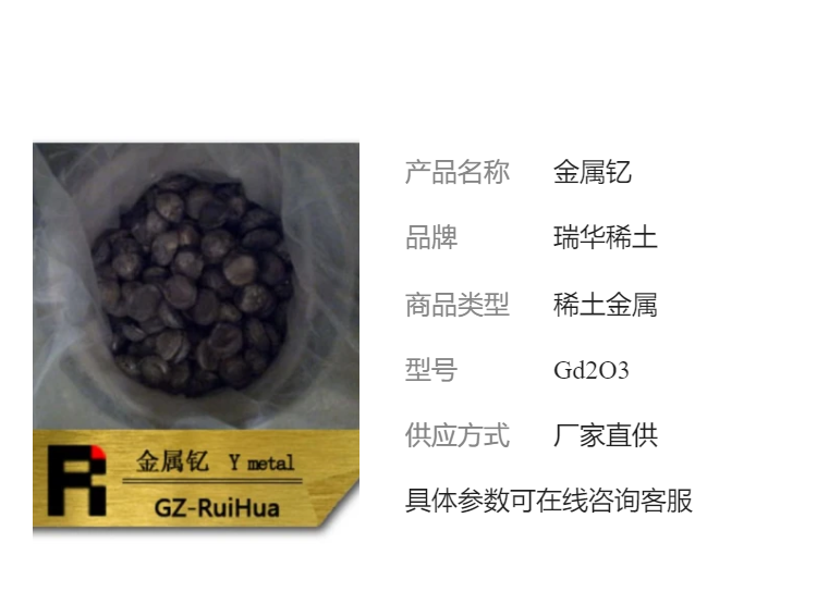 瑞华稀土国标金属钇Y粉 冶金专用