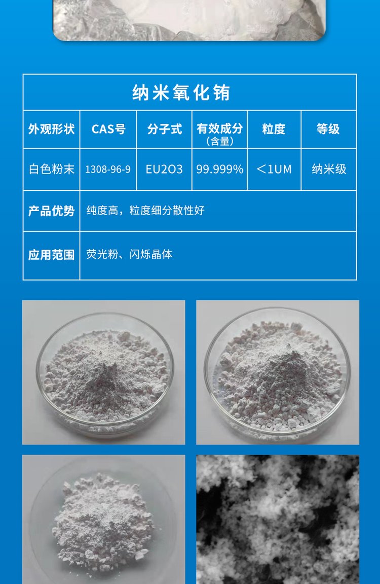 纳米氧化铕 Eu2O3 高纯白色粉末 制造彩色电视荧光粉