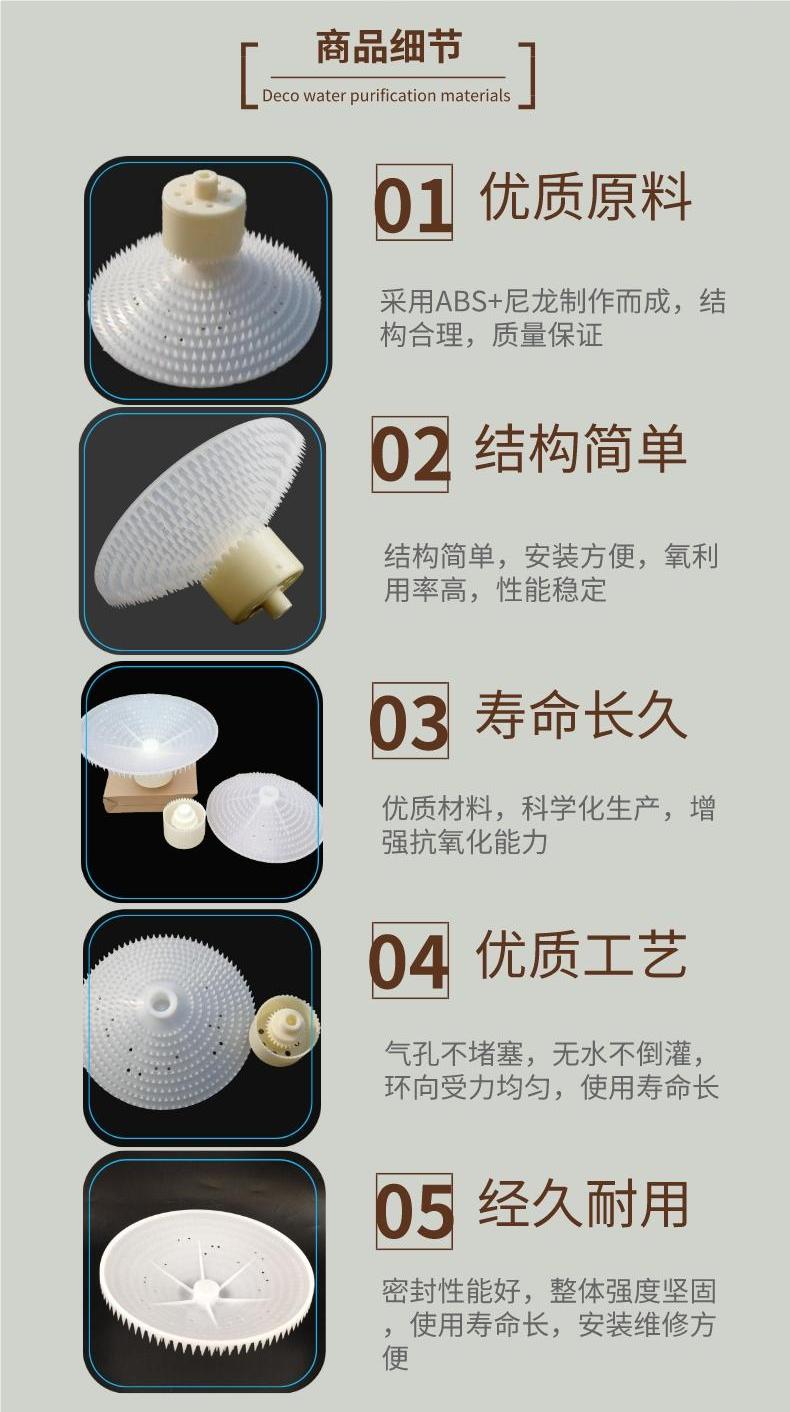 洗煤厂氧化池旋混曝气器 ABS散流式曝气头 300mm倒伞状曝气盘