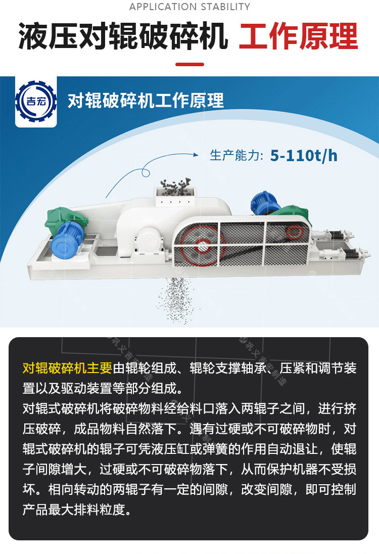 辉绿岩双辊碎沙机 时产70吨铁矿石数控全液压对辊式破碎机能耗低