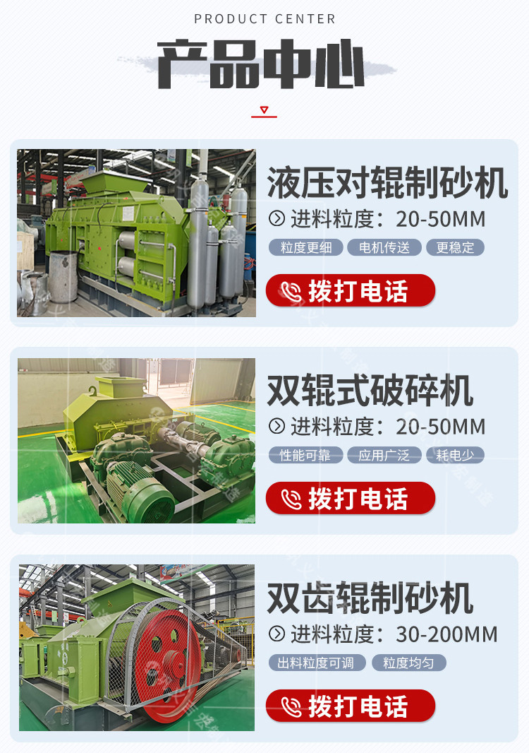 对辊破碎机、铁矿石破碎机、液压对辊制沙机、全自动数控液压对辊破碎机