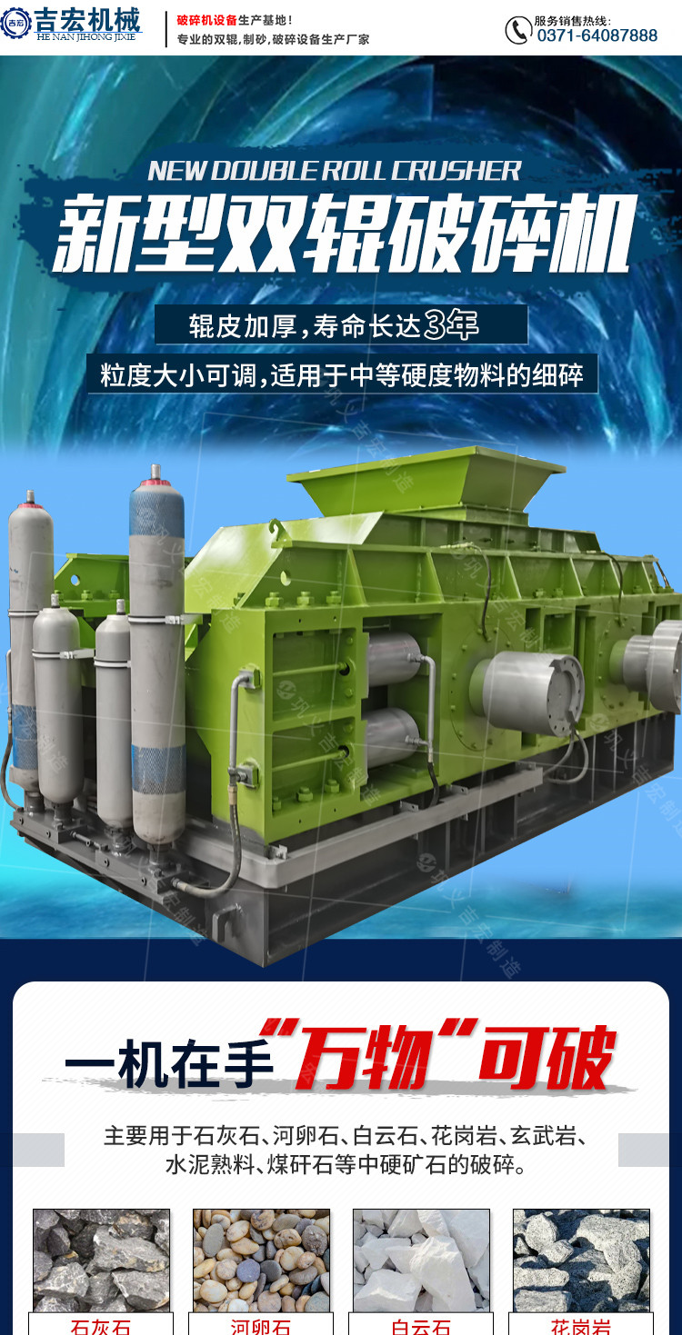 0806对辊式制砂机型号 新型石灰石双辊破碎机设备级配合理 吉宏