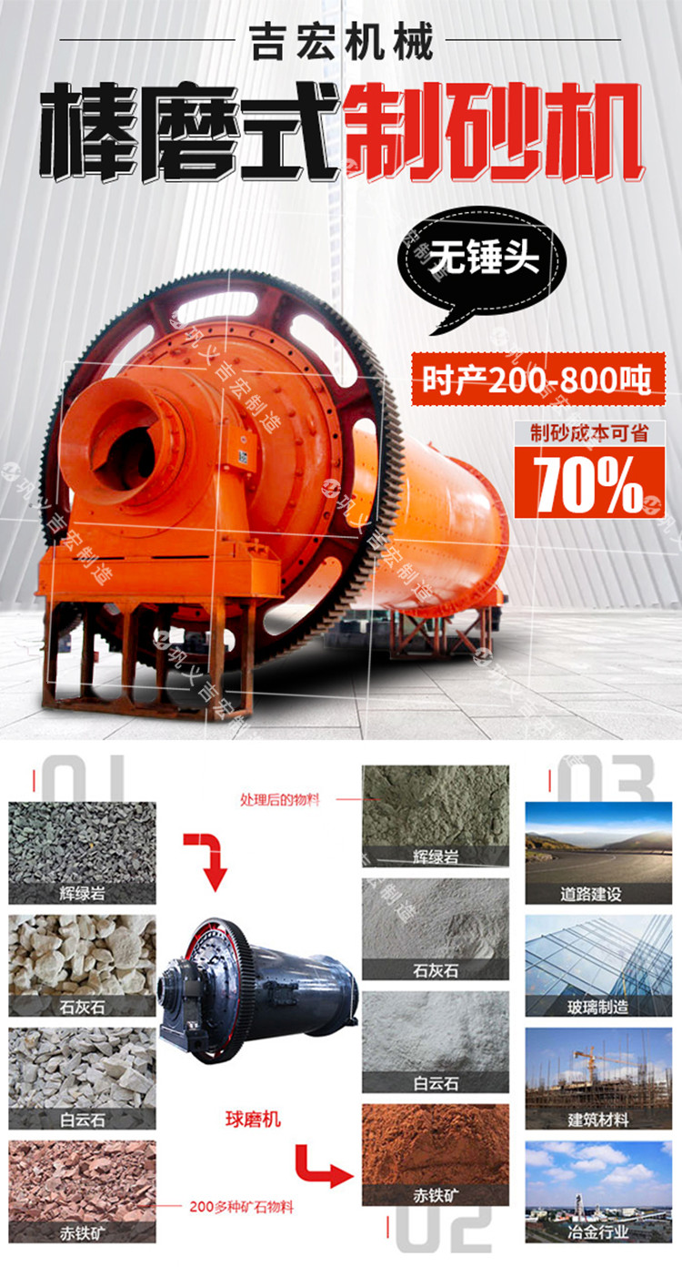 大型选矿用石料制砂机 干湿式磨粉棒磨机 球磨机生产线视频 吉宏