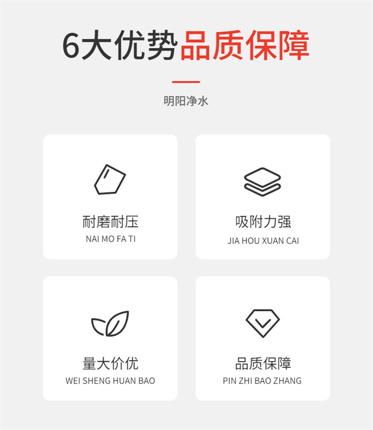 羟基磷灰石除氟滤料、AFM活性玻璃滤料、钾明矾、聚丙烯酰胺、聚合氯化铝、SDG酸气吸附剂、氧化铁脱硫剂、果壳活性炭、椰壳活性炭、竹炭、柱状活性炭、粉状活性炭、松树皮、蜂窝活性炭、石英砂、无烟煤滤料、火山岩、海绵铁滤料、纤维球滤料、慧星式纤维滤料、纤维束、斜管、多面空心球、立体弹性填料、聚苯乙烯泡沫颗粒