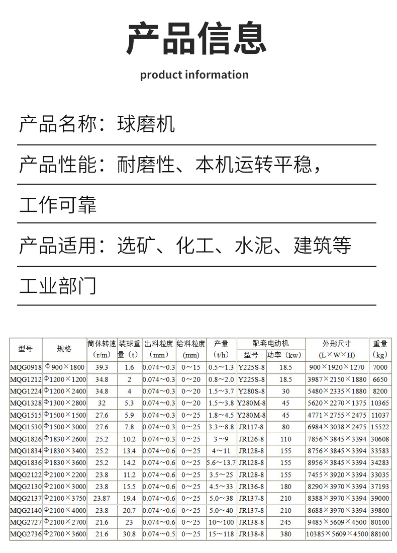 节能球磨机、陶瓷球磨机、铝灰皮带球磨机、干式球磨机、水式球磨机、化工球磨机、钢渣球磨机、铜渣球磨机、小型金矿球磨机