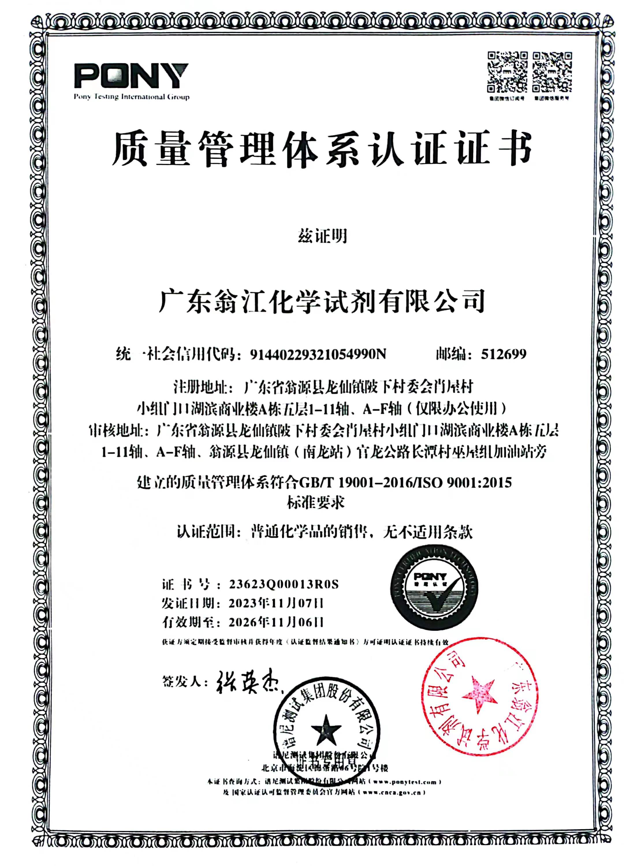 广东翁江化学试剂有限公司