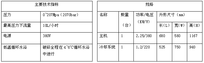 低温超高压连续流细胞破碎机利用超高压能量使样品通过狭缝瞬间释放,在剪切效应、空穴效应、碰撞效应的作用下,使细胞破碎,使物质均质、分散、乳化、颗粒纳米化。全过程在4℃-6℃的低温循环水浴中进行,保持原有物质活性和性能。
