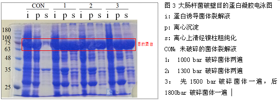 ◆大肠杆菌破壁目的蛋白凝胶电泳图(图3)