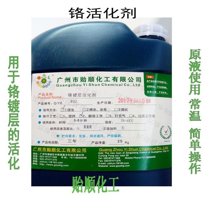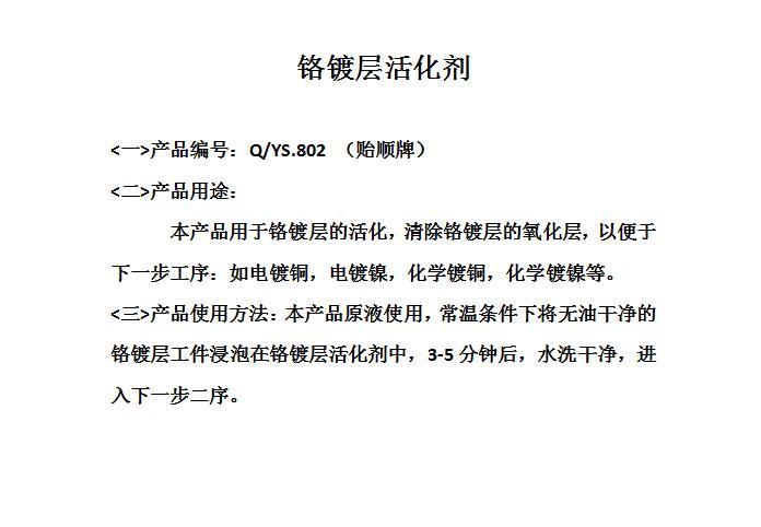 Q/YS.802贻顺牌 铬镀层活化剂 铬镀铜镀镍前处理剂 铬镀活化药水