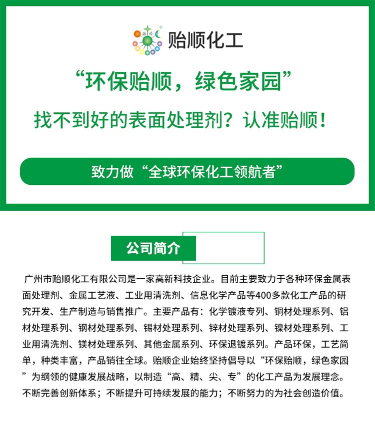 铜抛光剂、化学镀金水、钛合金抛光剂、退钛水、铜着咖啡色、铜材除油除锈剂、铝脱脂剂、环保退铜水、化学镀铜剂、钢铁发黑剂、化学镀镍水、退金剂、铝抛光剂、镀银剂、铝材无铬钝化剂、化学镀锡水、铜无铬钝化剂、铜发黑剂、铝材化学除毛刺抛光剂、退银剂、铜蚀刻液、仿金水、铝钝化剂、退镍水、化学镀铜水