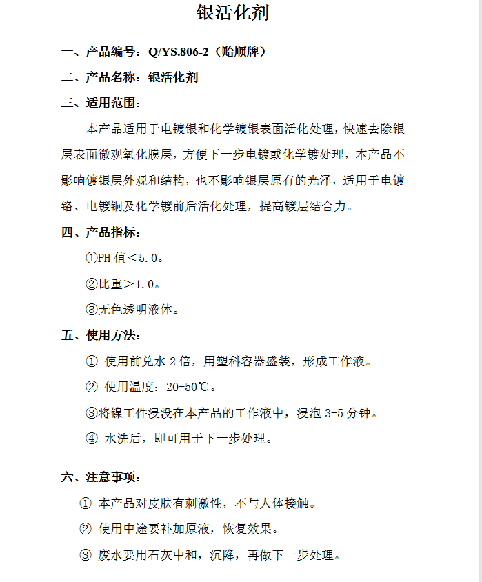 贻顺 银化学活化剂 银活化剂厂家 化学镀银表面活化处理