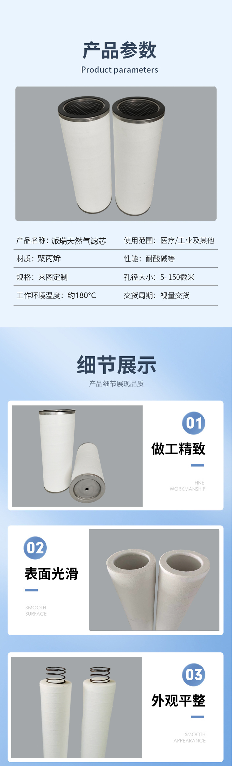 阻截膜滤芯、芳径分离滤芯、不锈钢滤芯、油雾分离滤芯、派瑞天然气滤芯、天然气滤芯、聚结分离滤芯、油水分离滤芯、玻纤烧结滤芯、烧结网滤芯、PE烧结滤芯、粉末烧结滤芯、粉末烧结滤片、陶瓷滤芯、曝气头、钛烧结滤芯、不锈钢烧结滤芯、高温烧结滤芯、纤维除雾器滤芯、熔喷滤芯、液压滤芯、除尘滤芯、水滤芯