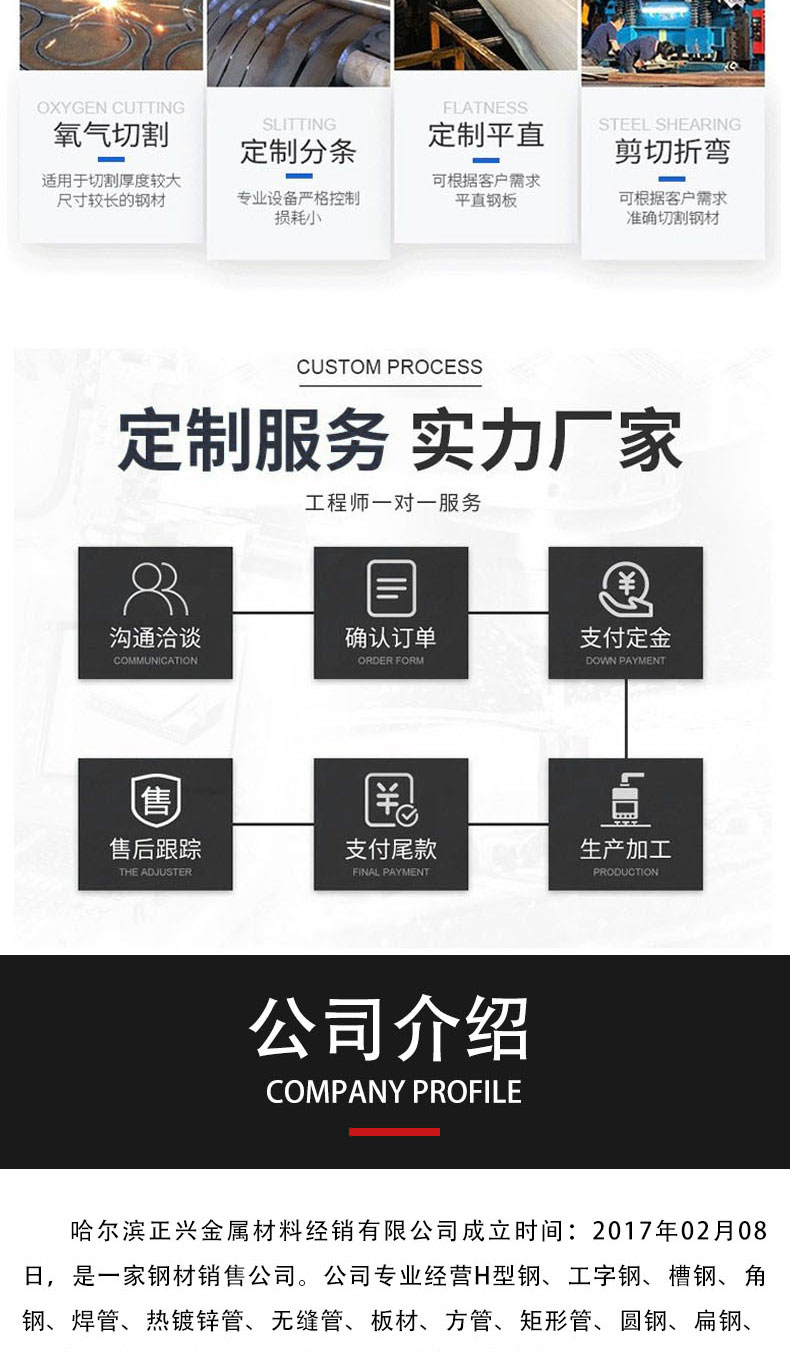 扁钢条、钢结构、工字钢、氧气管、排污管、异形管、排水管、厚壁管、螺旋管、热轧扁铁、建筑幕墙、切割角钢、实心扁条、凹槽钢材、保温钢管、镀锌槽钢、建筑钢材、镀锌扁钢、国标钢材、空心方钢、直缝钢管、光亮扁钢、工业焊管、冶金钢材、水管保温