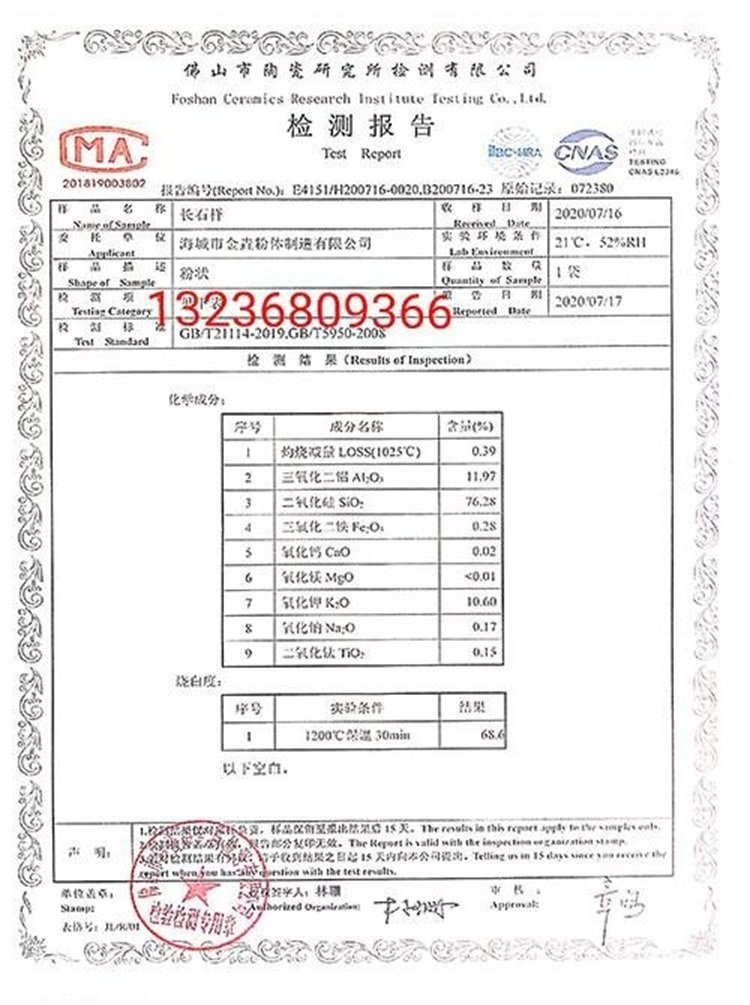 长石是钾、钠、钙等碱金属或碱土金属的铝硅酸盐矿物,也叫长石族矿物。钾长石(K2O·Al2O3·6SiO2)通常也称正长石,属单斜晶系,通常呈肉红色、呈白色或灰色。钾长石系列主要是正长石,微斜长石,透长石等。