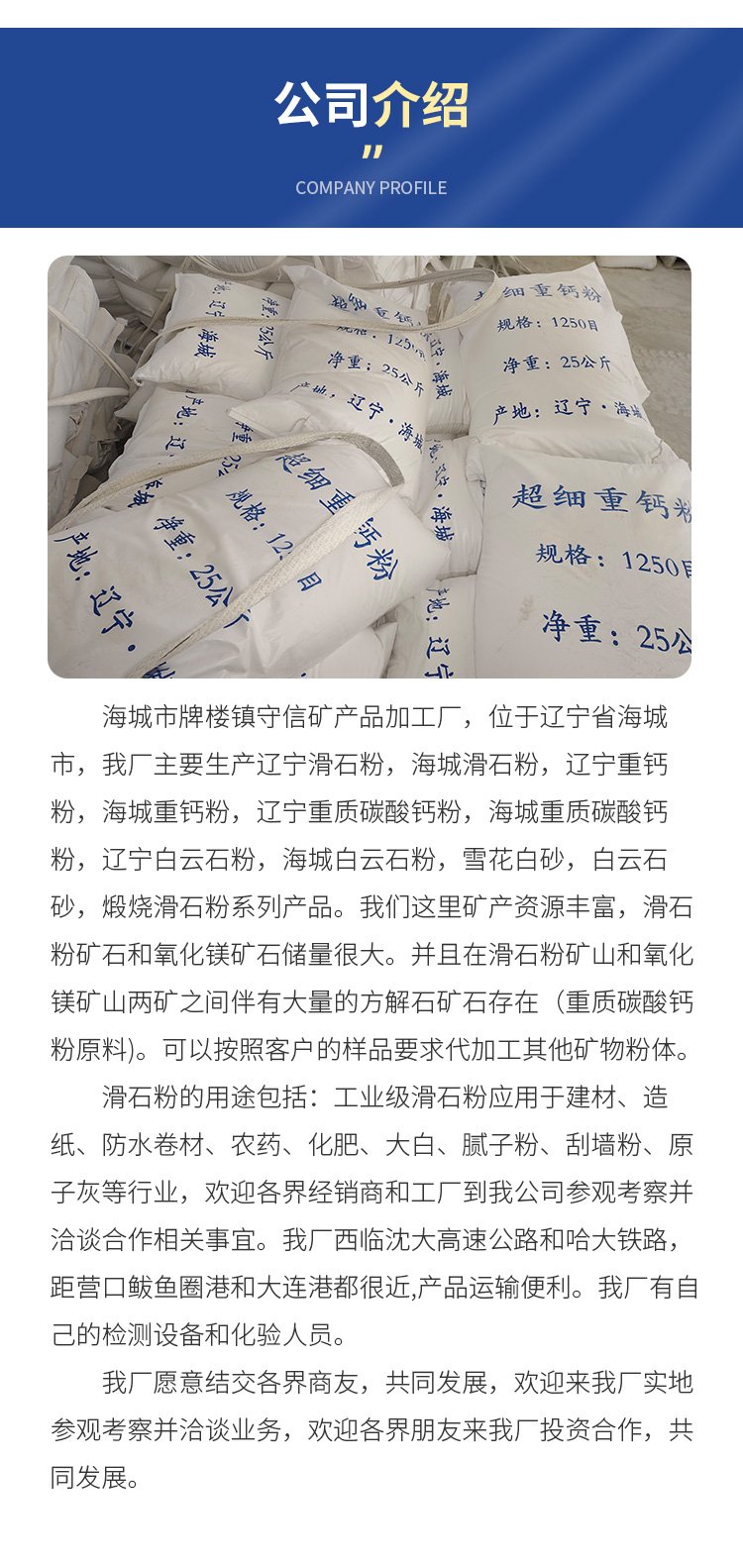 守信矿产 海 城钙粉厂 白度高 吸油率低 货源充足