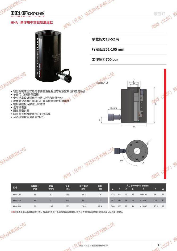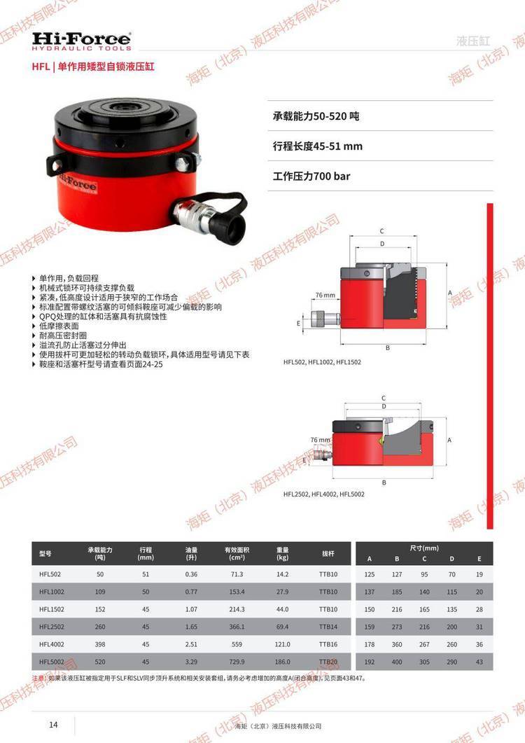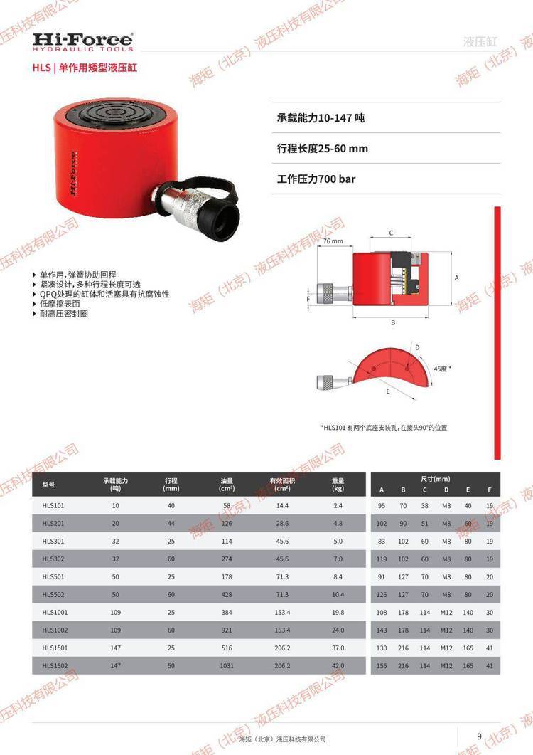 详细信息 hi-forceHSL302单作用矮型液压缸