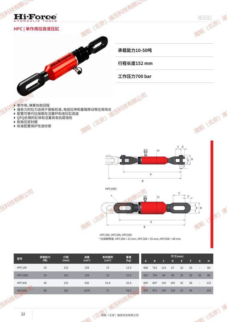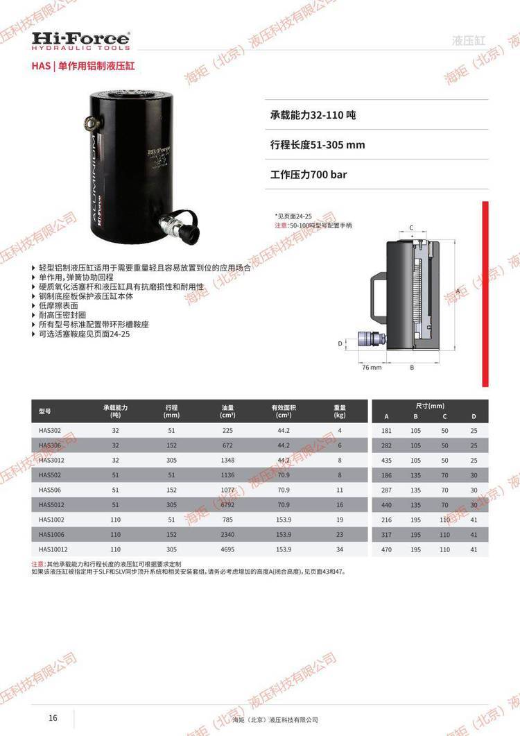英国HHA182单作用中空铝制液压缸