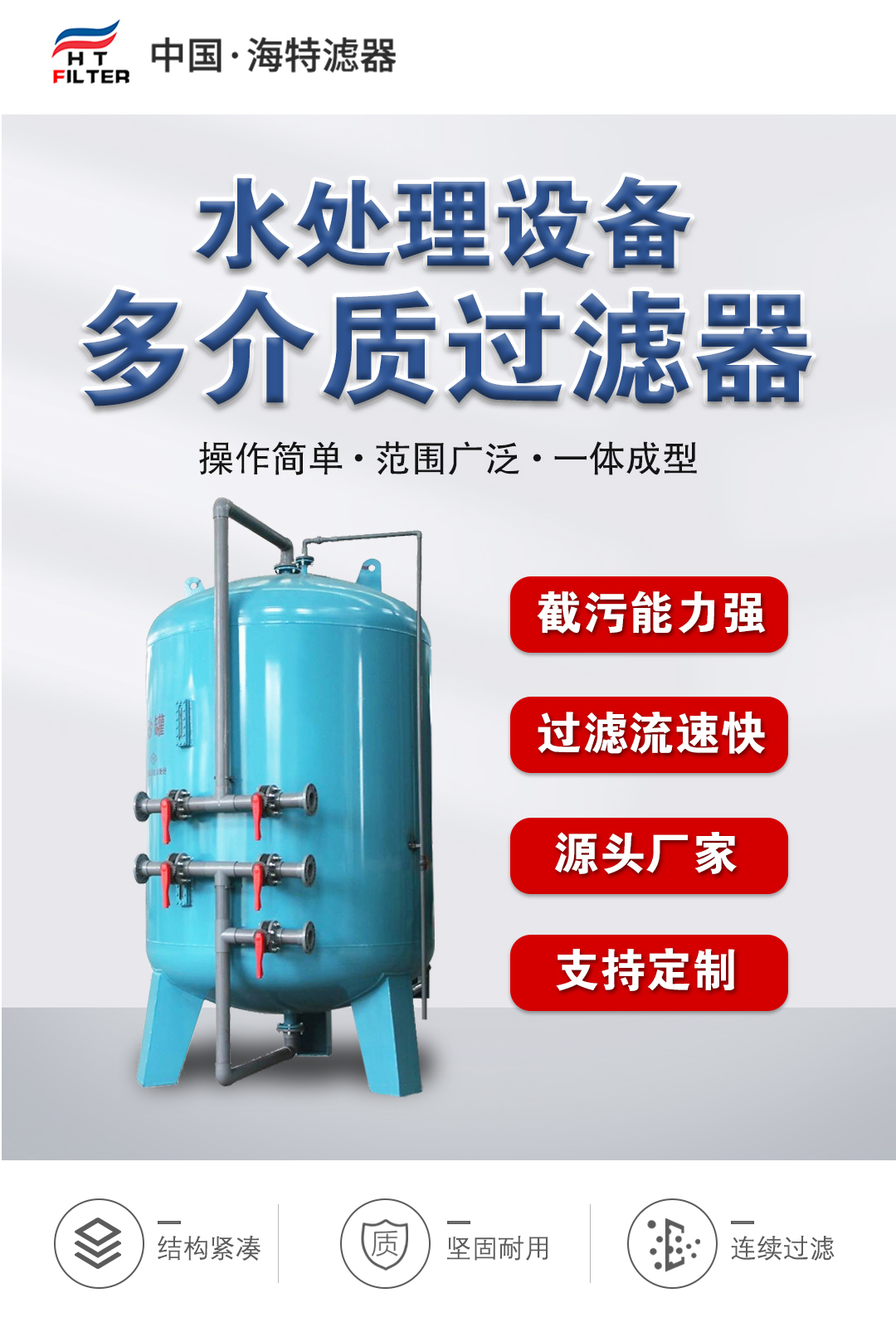 海特环保 中水回用降低浊度 石英砂活性炭多介质过滤器 除异味
