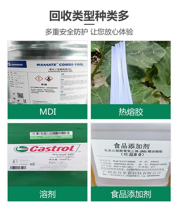 油漆回收、废旧油墨、陶瓷颜料、油墨回收、香精回收、松香树脂、树脂醇酸、回收橡胶、环氧树脂、回收树脂、回收陶瓷、交换树脂、废旧汽车、油漆地区、橡胶助剂、颜料再生、染料墨水、染料回收、库存化工、有机颜料、回收热熔胶、食品添加剂、回收钛白粉、添加剂回收、环氧丙烯酸