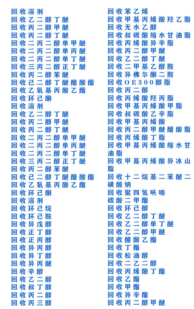油漆回收、废旧油墨、陶瓷颜料、油墨回收、香精回收、松香树脂、树脂醇酸、回收橡胶、环氧树脂、回收树脂、回收陶瓷、交换树脂、废旧汽车、油漆地区、橡胶助剂、颜料再生、染料墨水、染料回收、库存化工、有机颜料、回收热熔胶、食品添加剂、回收钛白粉、添加剂回收、环氧丙烯酸