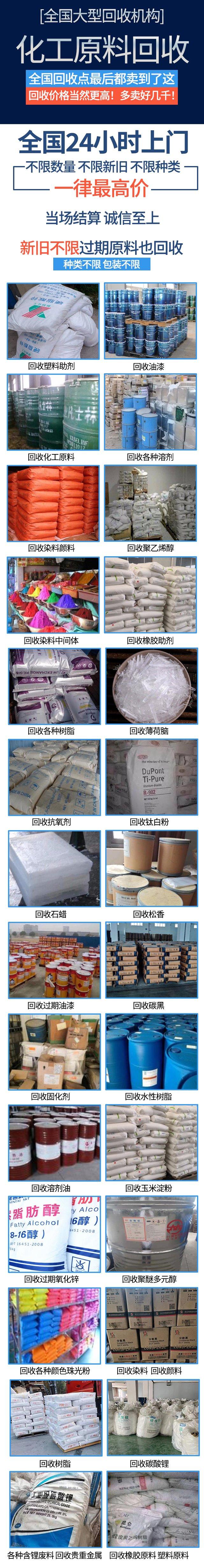 塑料助剂、精炼石蜡、化工催化剂、回收过期染料、回收气相白炭黑、回收油漆、回收树脂、回收钛白粉、回收日化原料、回收橡胶原料