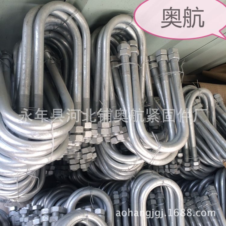永年县河北铺奥航紧固件厂是双头螺栓、单头螺栓、地脚螺栓、双头螺杆、预埋螺栓、U型螺栓、六角螺栓、高强度六角螺栓、六角螺母、钢筋连接套筒、异型螺栓、异型螺母、钢结构拉条拉杆、全螺纹螺栓、平垫、弹垫、双头螺柱、丝杠、全扣丝等加工定做各种异型件等产品专业生产加工的公司,拥有完整、科学的质量管理体系。永年县河北铺奥航紧固件厂的诚信、实力和产品质量获得业界的认可。欢迎各界朋友莅临参观、指导和业务洽谈。