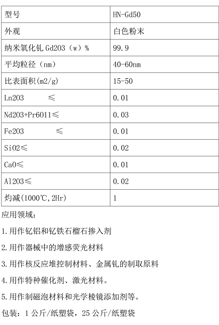 纳米氧化钆 恒格供应高纯超细纳米级三氧化二钆粉