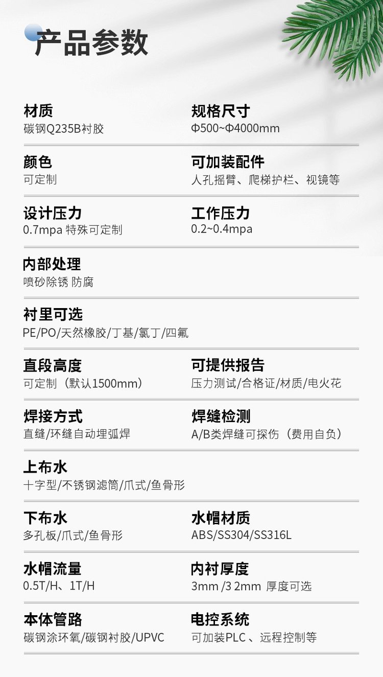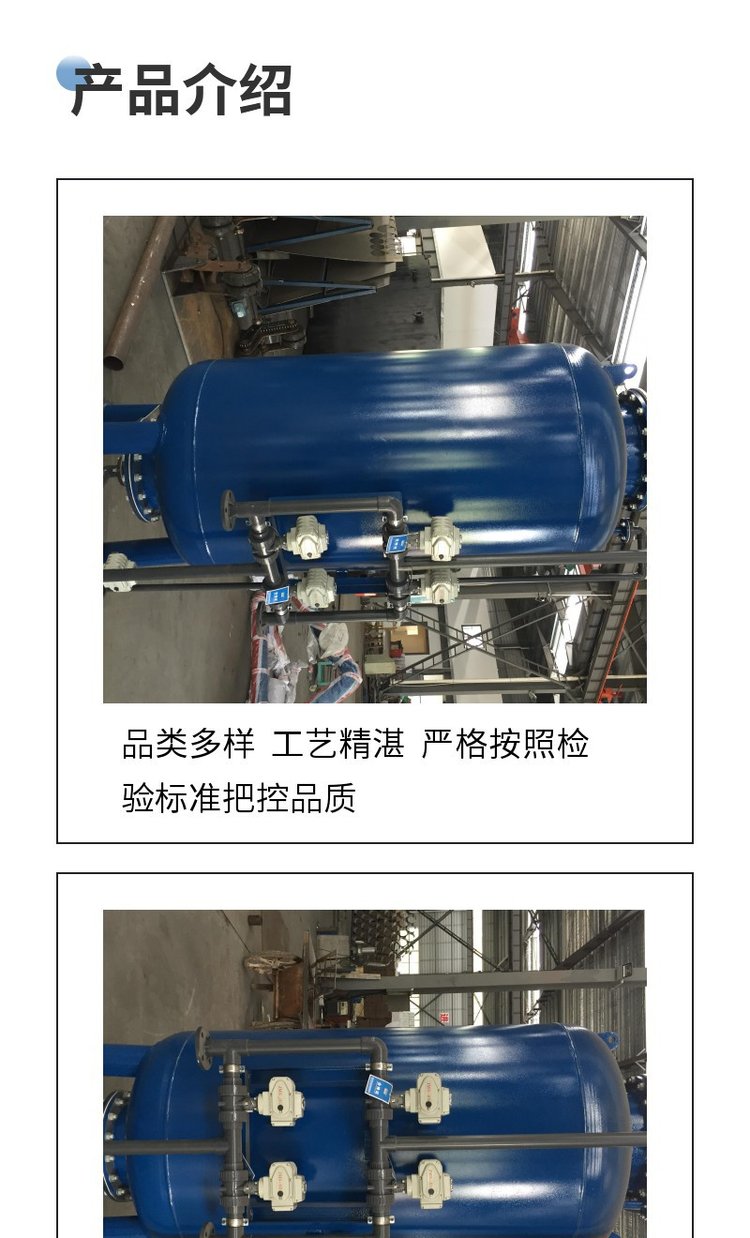 机械过滤器、袋式过滤器、精密过滤器、大流量过滤器、石英砂过滤器、活性炭过滤器、多介质过滤器、自清洗过滤器、纯水箱、搅拌罐、离子交换器、反渗透设备、超滤设备、碳钢储罐