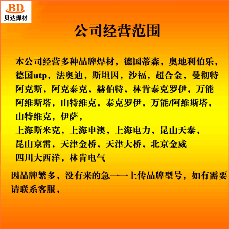 银焊条、银焊丝、铜焊条、铜焊丝、铝焊条、铝焊丝、耐磨焊条、耐磨焊丝、堆焊焊条、堆焊焊丝、不锈钢焊条、不锈钢焊丝、低温钢焊条、低温钢焊丝、耐热钢焊条、耐热钢焊丝、防水焊条、药心焊丝、氩弧焊丝、埋弧焊丝