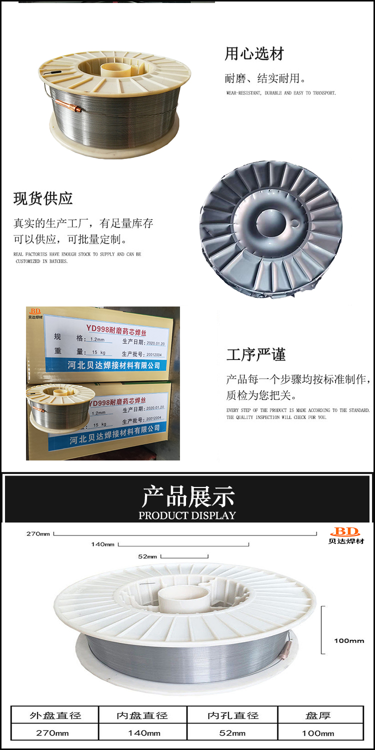 贝达 YD606耐磨药芯焊丝 用于电厂磨煤机 磨盘 水泥磨辊堆焊修复