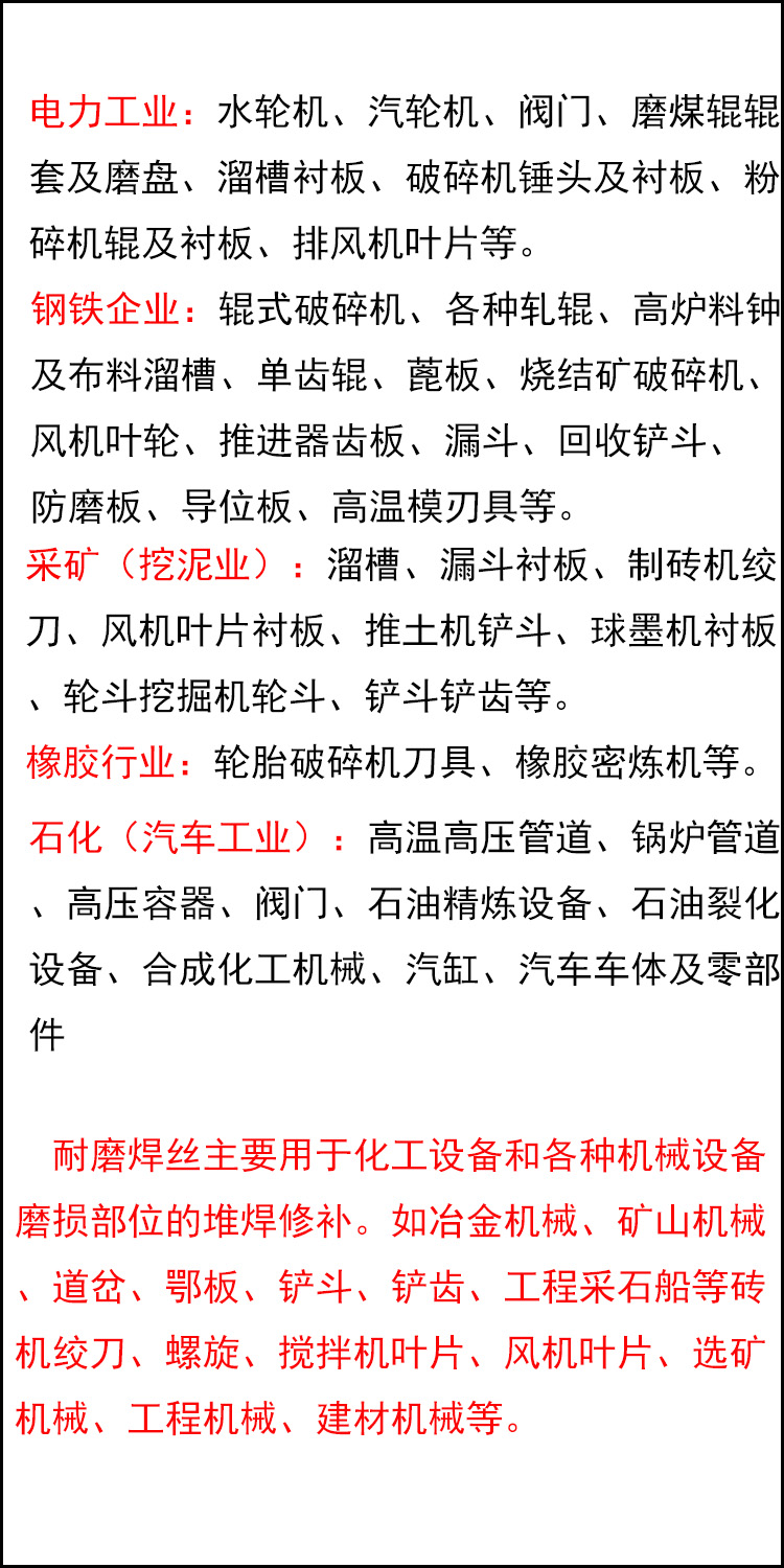 银焊条、银焊丝、铜焊条、铜焊丝、铝焊条、铝焊丝、耐磨焊条、耐磨焊丝、堆焊焊条、堆焊焊丝、不锈钢焊条、不锈钢焊丝、低温钢焊条、低温钢焊丝、耐热钢焊条、耐热钢焊丝、防水焊条、药心焊丝、氩弧焊丝、埋弧焊丝