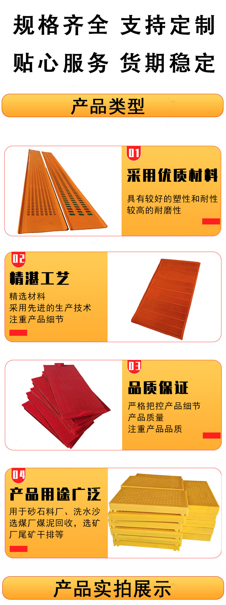 聚氨酯板、聚氨酯筛板、皮带清扫器、旋流器、聚氨酯包胶轮、橡胶弹簧