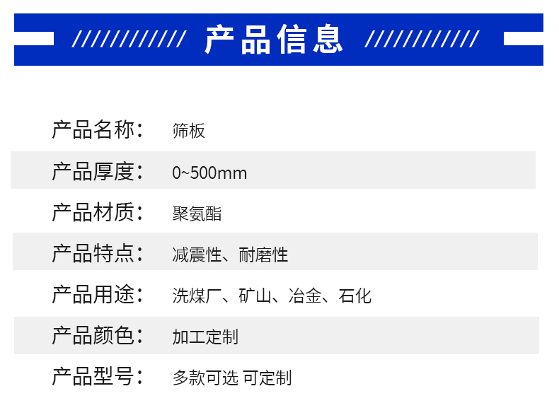 聚氨酯板、聚氨酯筛板、皮带清扫器、旋流器、聚氨酯包胶轮、橡胶弹簧