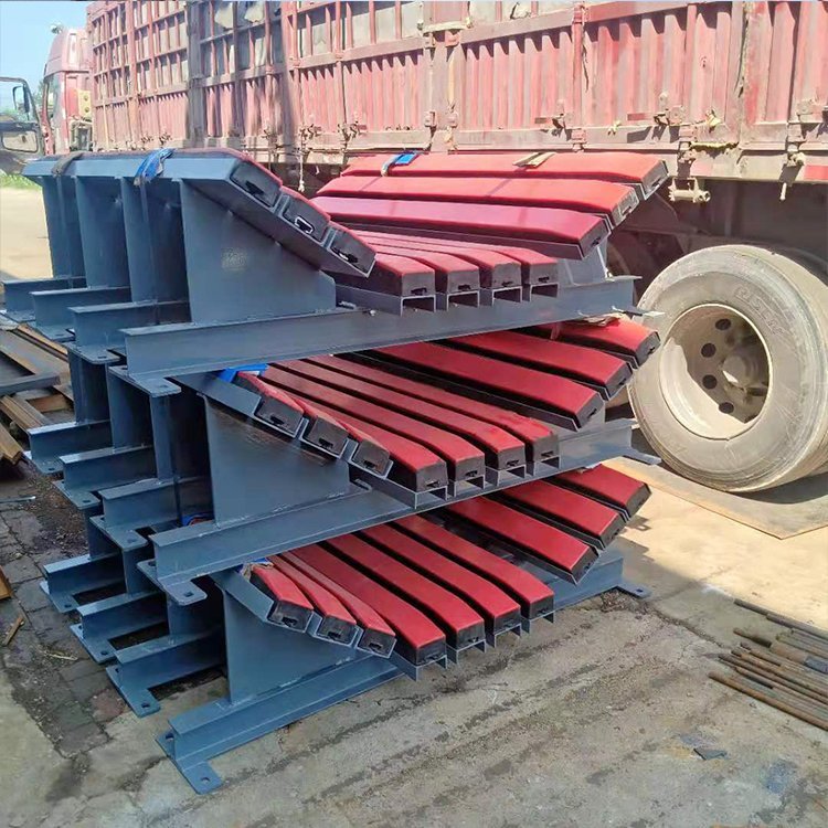 2、支承托辊频繁受物料冲击容易脱落,支承辊直立的支架座易挂伤或撕裂皮带。