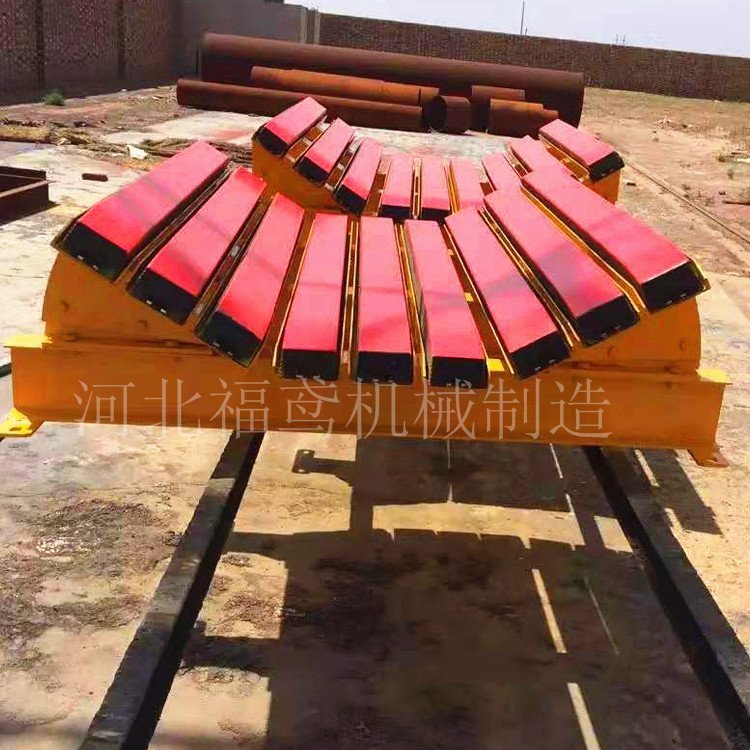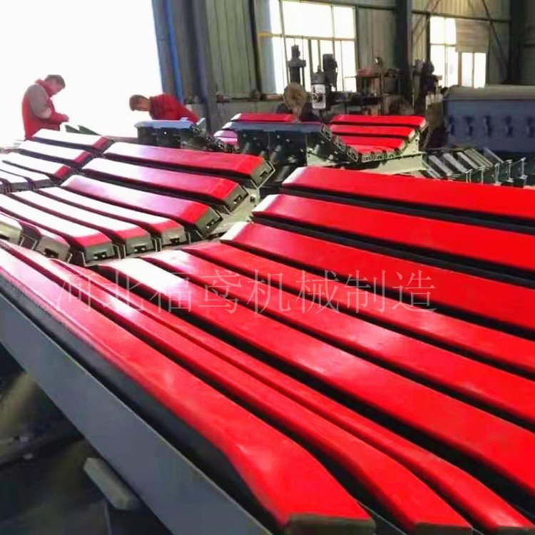 替代传统缓冲托辊在落料缓冲床使用之前主要采用缓冲托辊,已经延续使用了几十年,但是因此造成的输送皮带撕裂,以及落料口密封丌严,物料下落堆积等问题一直困扰着使用用户,也导致了很大的产能浪费的,又增加了人工的成本。落料堆积物料堆积和输送带纵向撕裂传统的托辊支承的缺点。